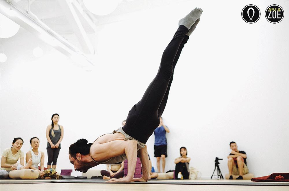 工作坊前一周,得知老师的饮食不仅全素,不仅蛋奶不食,不仅拒绝惰性食品和葱姜蒜香料,偏向于肉类的洋葱、蘑菇和茄子也都不食用,第一个猜想,Dario老师一定是个细节控。尽管那时候是心情崩溃的,等到老师真的站在面前,讨论起第二天饮食时,告诉我两根香蕉一杯无糖豆浆足矣,我甚至不太确认,老师是在照顾难以订餐的困难还是真的只需要这些食物,直到老师在课堂上讲起阿育吠陀饮食:“有的食物之间的搭配很美妙,而有的食物在同一时间食用则是灾难。”不吃水果店里配搭好的果切盒,只要一种水果:香蕉或者番石榴,才终于明白,老师真的只吃两根香蕉一杯豆浆作为午餐就足矣了。双手捧合所能盛,即是每日饮食所需。当太阳落山,我们则不再需要饮食,肠胃需要休息来制造让身体保持年轻活力的荷尔蒙。 早早得知老师在阿育吠陀饮食上颇有深究,真的听了老师的课,才把道听途说来的一些知识点串成了线,明白了所以然。 老师对食物摄入苛刻约束,同样也常常做清洁法。这样始终保持身体和意识的洁净,更像是对瑜伽精神的映射现实。在短短相处的这几天,发现每日清晨做呼吸控制法是老师的必修功课,工作坊中小小示范了一下并讲解惊掉一地眼球的神奇Nauli(对,就是那张肚子在蠕动的照片),正是希望我们能直观的了解呼吸控制法对身体及练习的帮助。 第三点,毋需多言的,当然是老师的瑜伽体式讲解。从所有人都再熟悉不过的Vinyasa开始了工作坊的第一节课:手臂曲到哪里,头延伸到哪里,脚趾推到哪里,髋提到哪里,但是最最最重要的是,必须随着乌加依呼吸的节拍而动。每一个动作,每一个呼吸,老师打着节拍来计时,而一切也好像都经过精密计算过一样,分毫不差,呼吸完成动作刚刚好回到原点,通过这种动作呼吸严格一体的训练,让很多老师口中的能量流动不再显得那么虚无缥缈。 从笔者不同照片拍摄的角度看,跟老师意大利血统的天生大长腿其实并无关系,而是Dario老师自身体系(NavakaranaVinyasa)本身流动起来美的不像话。根据这个体系的编排理论,不拘泥于固定不动的体式,而是随着呼吸流动变得流畅且富有韵律感,一个半小时的基础流动之后,身体酣畅淋漓。 最后想再一次强调的还是给所有人留下了深刻印象的老师上课的节奏感,配合敲击的鼓点不自觉的会让意识关注在呼吸,呼吸流畅,流动也跟着流畅,能量也就随之而来,给身体好像卸下了重重的的包袱。 还有更多的精彩,期待你用自己的视角去挖掘,去体验。 引用我们送别老师去机场的老师助手一段话来结尾:“我感觉到对于dario老师而言似乎没有所谓的亲密关系,在他心里,所有人与他的距离都是相同的。任何一种人际关系中的亲疏等级是不存在的。因此和他相处,我受到的教育是,不要去想着和他建立什么样的关系,或是占有或是一种我是他的谁这样的心态,所有人都是平等的。” 好奇吗?等待Dario老师再来的那天。